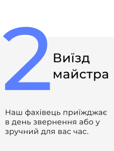 Майстер приїжджає в день звернення. Обслуговуємо всі райони Києва.